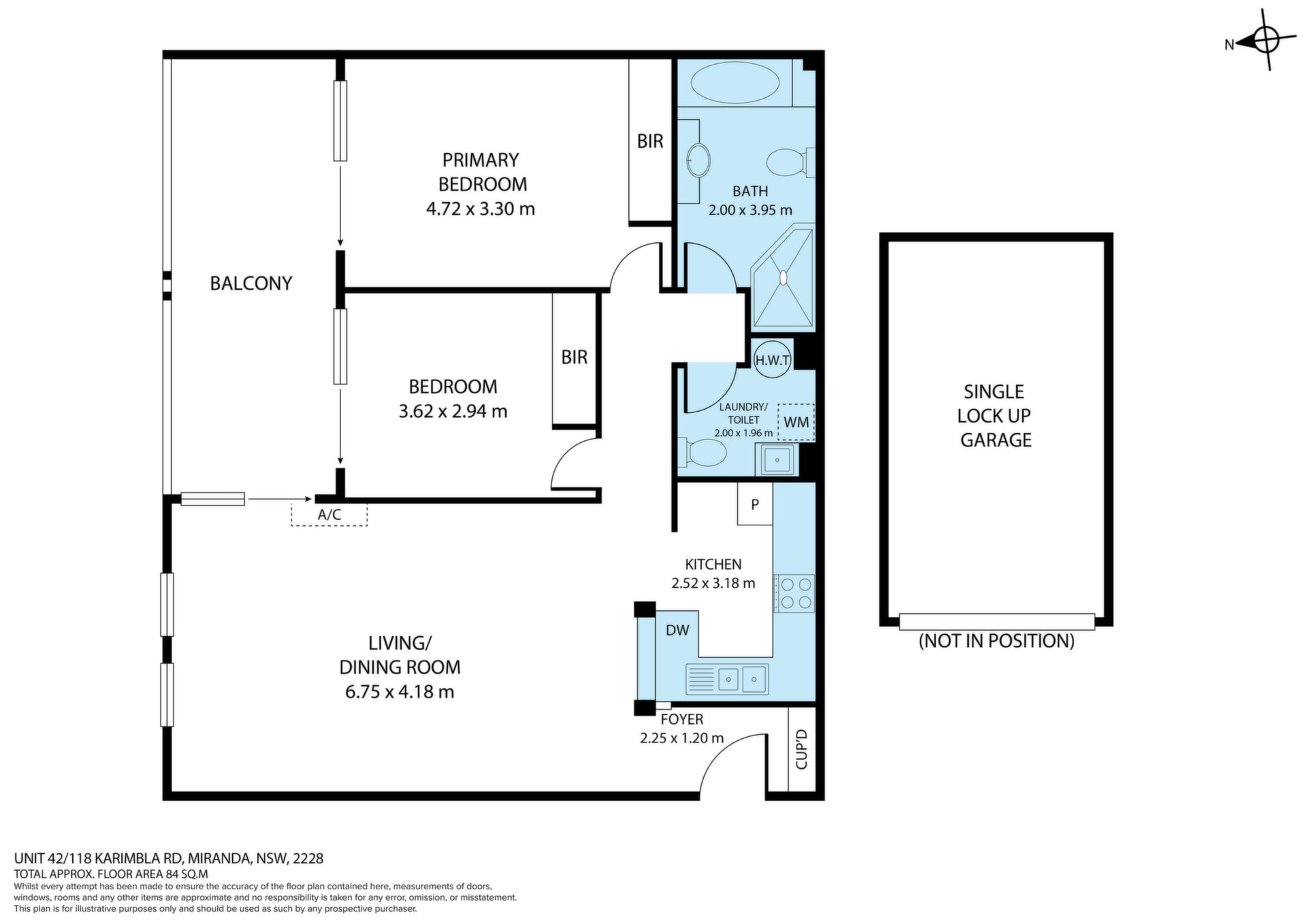 Combined living and dining area offering a functional, open layout Air-conditioned living space for year-round comfort Modern kitchen complete with stainless steel appliances and a dishwasher Two generous bedrooms, each with built-in wardrobes and direct access to the balcony Sunny north-facing balcony, perfect for morning coffee or relaxing outdoors Internal laundry with the added convenience of a second toilet Single lock-up garage within a secure building for peace of mind Stroll to Westfield Miranda, local cafés, restaurants, parks, and transport options
