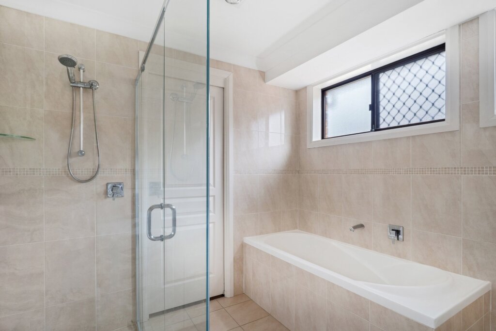 The home comprises of three sizeable bedrooms, all complete with built-in wardrobes. The master bedroom enjoys the added convenience of direct access to the main bathroom. The spacious main bathroom is filled with natural light and includes a built-in bath, offering both comfort and practicality for families.